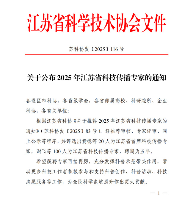 我院姚进教授、李柯然副教授入选 2025 年江苏省科技传播专家