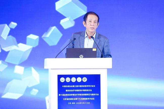 2025年11月21日至23日,中国抗癌协会第三届中国放射医学学术会议暨放射治疗与辐射防护菁英研讨会、第十届金陵放射肿瘤治疗学新进展暨靶区勾画研讨会、江苏省抗癌协会第十六次鼻咽癌学术年会在南京成功举办。大会由南京医科大学附属肿瘤医院(江苏省肿瘤医院)牵头承办,南京医科大学放射医学系参与协办。中国工程院院士于金明、中国工程院院士樊代明、中国工程院院士沈洪兵、中国科学院院士吴宜灿、校长胡志斌出席大会,中国抗癌协会、江苏省抗癌协会、附属肿瘤医院(江苏省肿瘤医院)、相关医疗机构1500余名知名专家、学者参加大会。